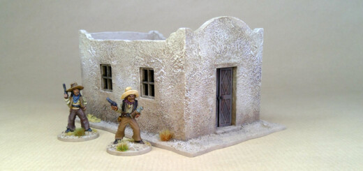 This time round, I was drawn to the Mexican border and the adobe-style backdrops of the movies. I planned to create an adobe-style, flat-roofed Mexican border village for 28mm gun-fighting games.