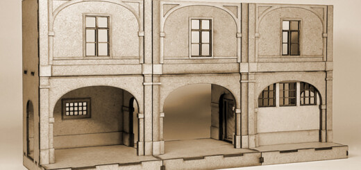 The model stands on a 100mm-square terrain tile. The archway ground floor is like the cloister of the convent but is completely open. This allows for wall pieces to be added on. It’s designed to be adaptable but the sides will always match and the tiles will stay modular.