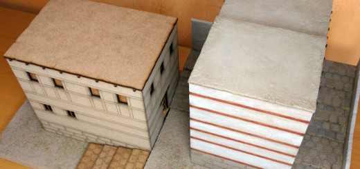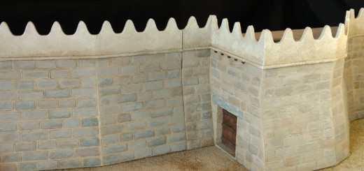 All the models of my planned Bronze Age range would most probably share some basic design elements. In my mind, three distinct areas of Troy would need to be represented. First, the fortifications themselves. Second, the palaces and temples within the citadel on the summit of the mound. Third, the buildings of the lower town – the city beyond the citadel but within the city walls. All of these would have some design elements in common.